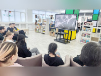 Кездесу соңында Жамбыл туралы деректі фильмнен үзінді көрсетіліп, оқушылар ақынның өз бейнесін көріп, сол дәуірдің рухын сезінуге мүмкіндік алды. Осындай кездесулер тарихты жаңаша тануға және поэзияның тек ұйқас емес, адам рухының күші екенін түсінуге көмектеседі.